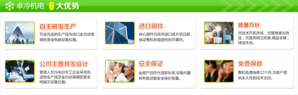 • 深圳市卓冷機電設備有限公司是集研發、設計、制造、銷售,安裝為一體的綜合性公司,專業生產冷凍和空調設備及安裝。經過十三年的發展,公司從無到有,從小到大,已經具備雄厚的制冷技術、并擁有現代化的生產線和檢測設備,以生產高質量的冷凍空調設備和完善的售后服務贏得了國內廣大客戶和經銷商的信賴。